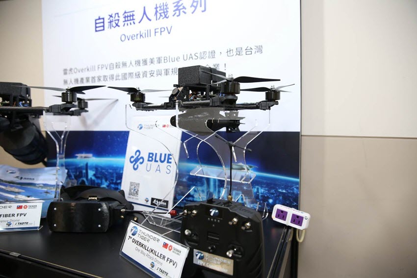 雷虎科技はあわせて、台湾製の光ファイバー技術を採用した「Overkill Fiber Optic FPV」も披露した。光ファイバー方式は、従来の無線周波数ベースのFPV無人機に比べ、電磁妨害を受けにくい点が特徴だ。電子戦環境下でも通信を維持しやすく、前線での精密打撃や偵察任務への適用を見込む。